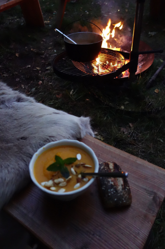 Vi instruerer og faciliterer gruppeoplevelsen, har den overordnede plan – og tidsplanen, men opfordrer dig til at nyde processen i tillid til, at det, du laver over dit bål, vil passe smukt ind i det fælles måltid, som alle omkring dig tilbereder samtidig.
